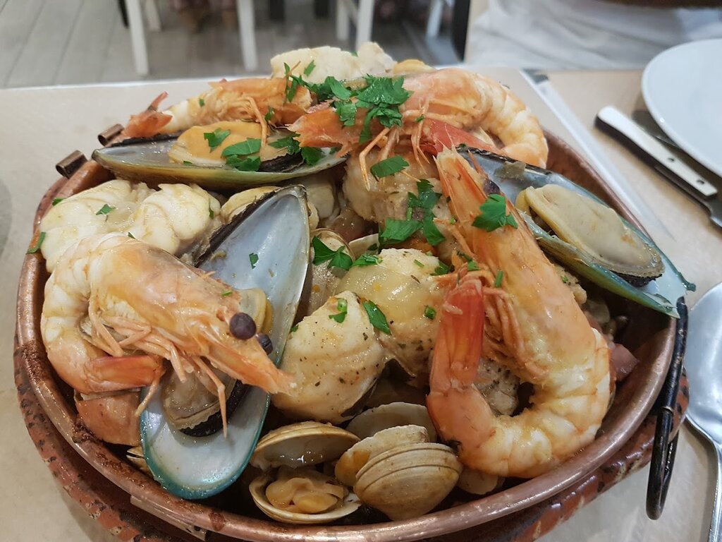 Bacalhau e peixe grelhado, vitela, costeleta, cordeiro e posta assada