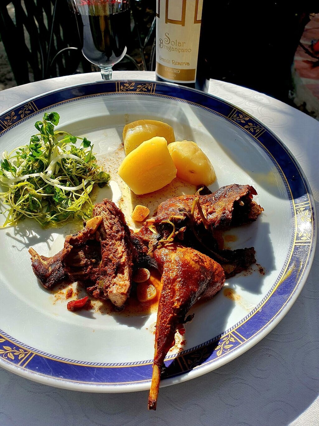 Perdiz com uvas, arroz de lebre, javali estufado em pote de ferro, posta de vitela na brasa, faisão com castanhas, fumeiro regional, sopa de castanhas, bolo de castanhas, abóbora dourada e sopa de cerejas.